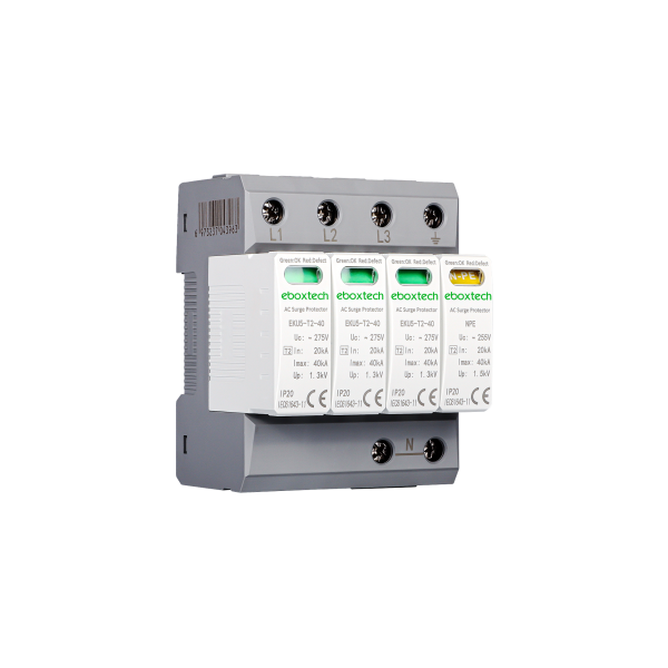 EKU5-T2-40 是 2 类交流防雷器,Imax=40kA,该产品还支持远程信号,采用了本系列创新的跳闸和分断技术。最大连续工作交流电压达 440v,最大放电电流达 40kA。