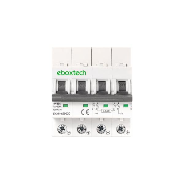 EKM1-63DC 系列微型断路器具有过流保护范围,可在过载、短路和漏电情况下自动切断电源,为人身和电器提供全面保护。